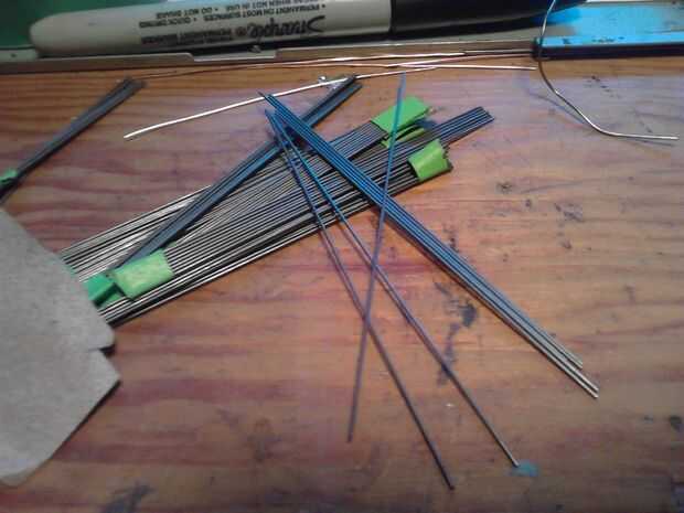 Deja comienzo con los cables que utilizas para hacer la aguja. He probado varios tipos de cables para esto. Buswire, o algún tipo de rescate de alambre se usan cubos de LED, pero he encontrado que los alambres de acero endurecidos son los mejores, y son mucho mejores que afianzar el alambre.