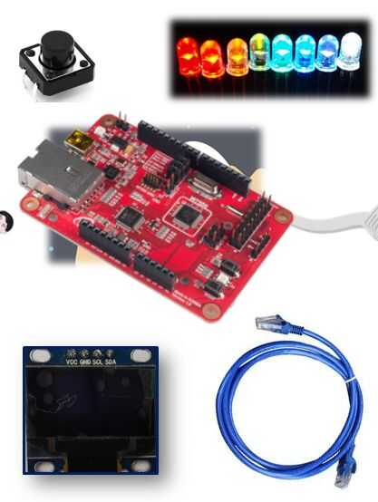 Entonces encontré cable WIZwiki-W7500, algunos LEDs, botones, OLED y LAN... (Todos utilizan para WIZnet Academia...)