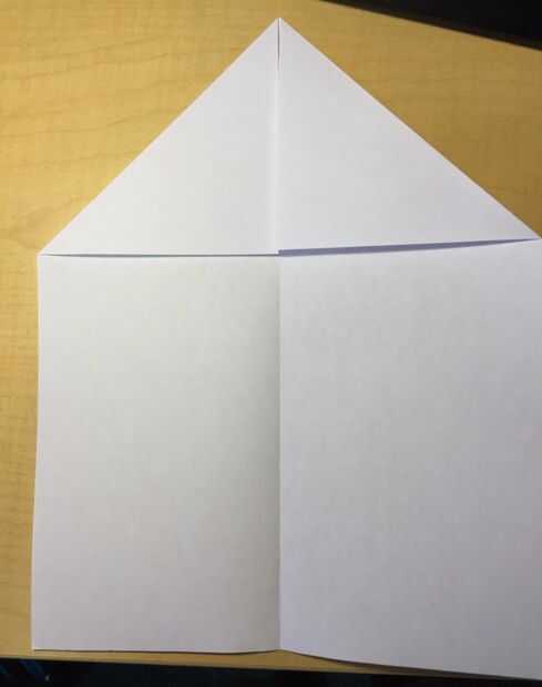 Desdoble el papel y doblar las esquinas de dos para que alinee con la línea de doblez del centro.