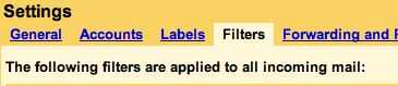 Paso 1: Haga clic en "Configuración" en la esquina superior derecha de GMail, luego seleccione el "Filtros" y haga clic en "Crear un nuevo filtro" en la parte inferior de la lista.