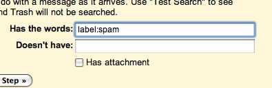 Paso 2: Usted necesitará completar el campo "Tiene las palabras" con "etiqueta: spam" sin las comillas.