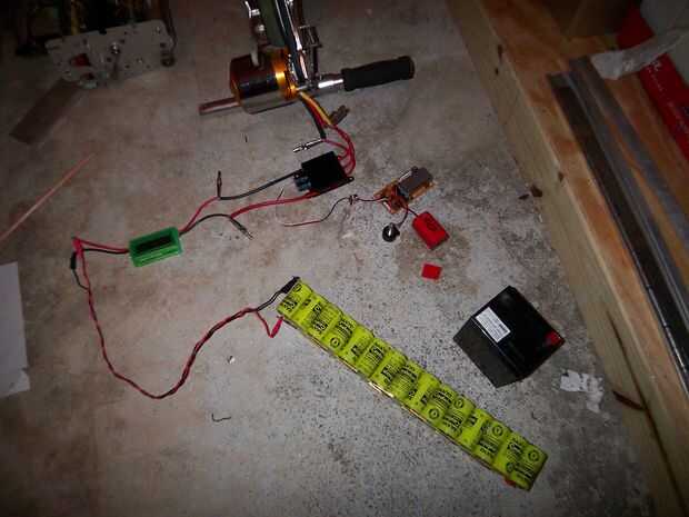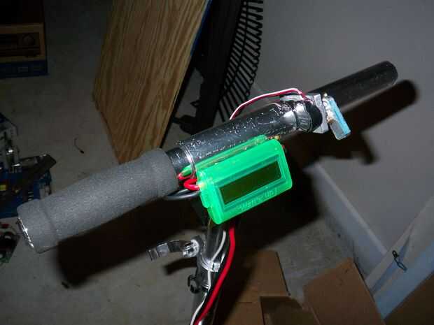 Llevar el medidor de potencia de R/C en la mezcla requiere correr un cable de calibre 10 muy largo en la parte superior del manillar y la espalda. El metro tuvo una lectura directa de alambre grandes y no utiliza a algún tipo de percepción remota como un sensor de efecto hall, así que tuve que lidiar con ella si quería hasta top. Esto es una cosa cambiaría en el diseño - obtener un datalogger real o uno con algunos sensores remotos! 10 pies extras de alambre agrega resistencia que disminuye la eficiencia global del sistema.