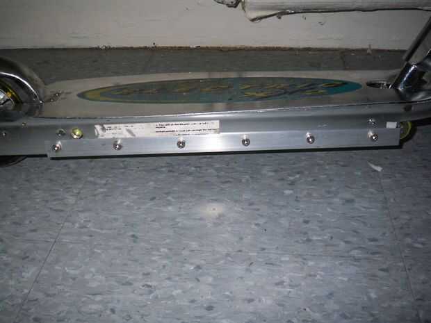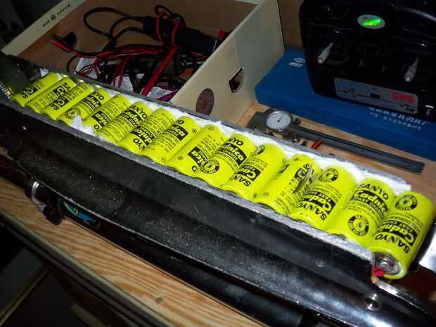 Dos trozos de ángulo de aluminio fueron empernados en el lado del chasis, con las patas mirando hacia adentro, para conservar la batería de debajo. Convenientemente, el arreglo de pico y Valle de células C para un paquete lo suficientemente alto como para permitir cierta compresión con los soportes de retención que no ir a ninguna parte.