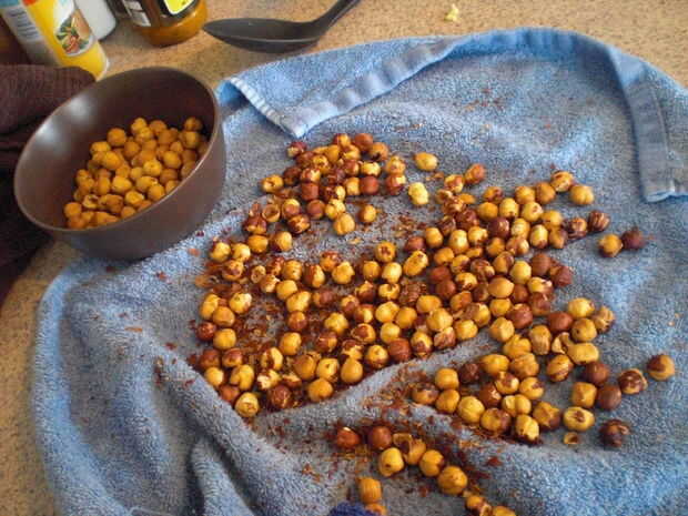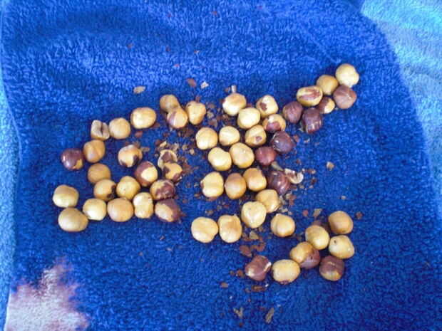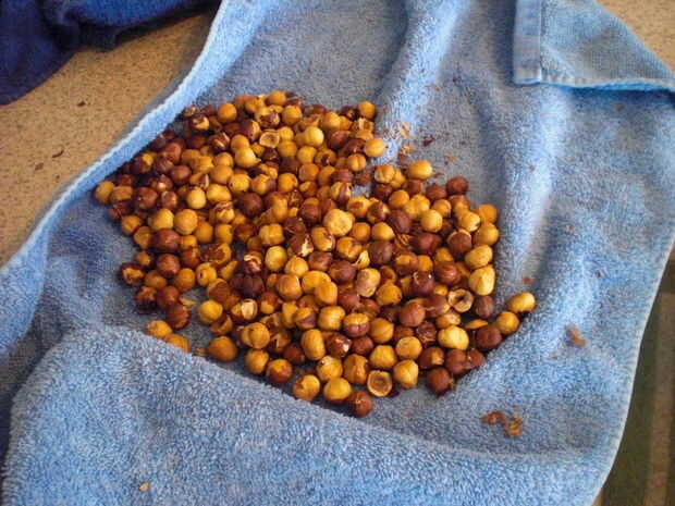 Utilizando la toalla original o un un pequeño paño, frotar las avellanas contra otros y contra la toalla. Esto ayuda a eliminar las pieles. Retire las avellanas sin desollar y ponerlos en un bol. Un poco de piel izquierda no duele.
