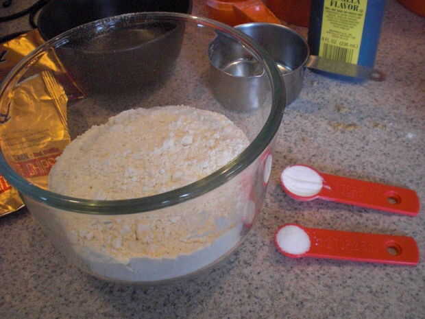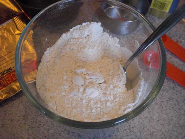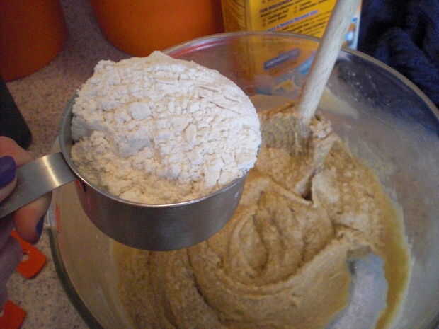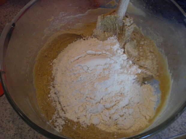 Añadir gradualmente la mezcla seca a la mezcla húmeda.
