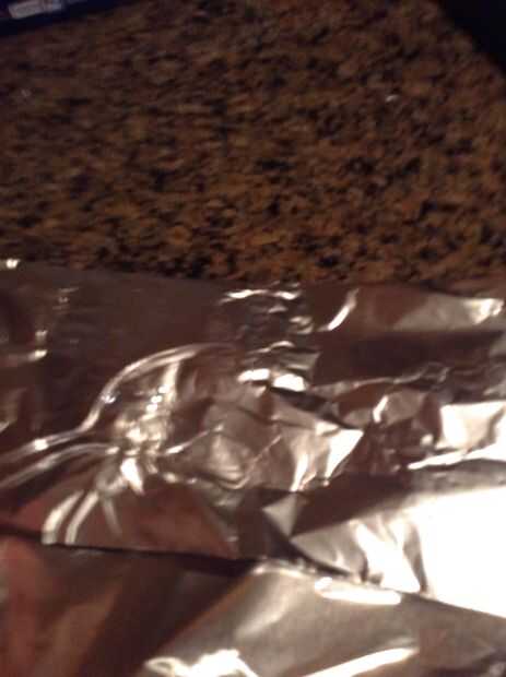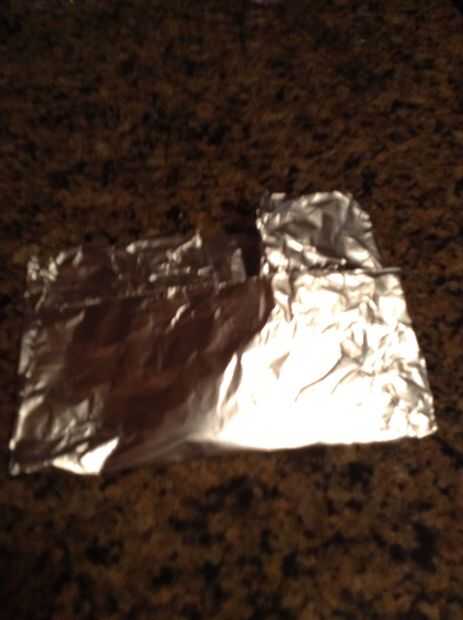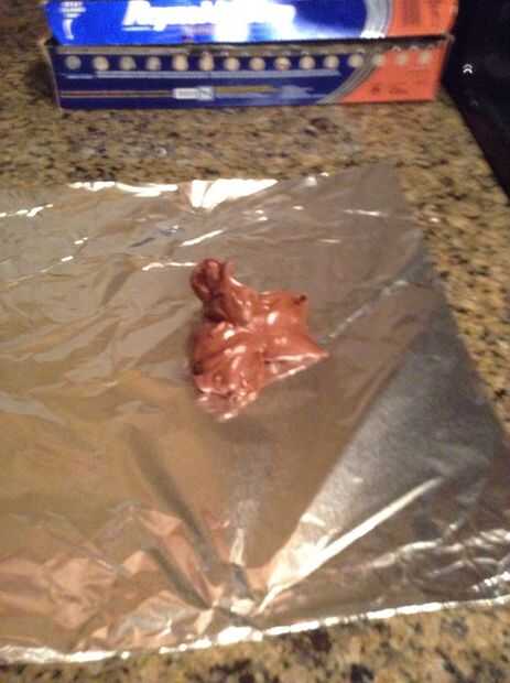 Corte un trozo de papel de aluminio y con 2 cucharas extender Nocilla en el centro de la hoja. Doblar un lado sobre Nutella y con la tercera cuchara, alise de Nutella en una torta plana. También puede utilizar los dedos para ello. Doble y coloque en la nevera.