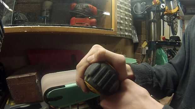 Corte el extremo de la broca con una sierra para metales a continuación moler un punto con la lijadora de banda, entonces hice el punto embotado para facilitar cuando añadimos el borde de corte más adelante.