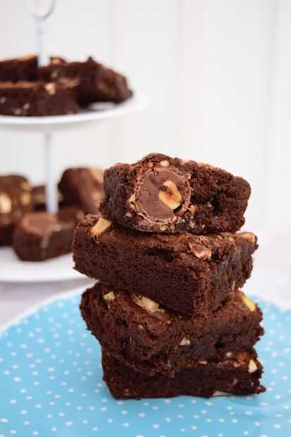Dejar en la lata se enfríe y luego levantar y cortar en cuadrados. Los muy afortunados tendrán un Ferrero en su pieza de chocolate. Estas son las nueces ocultadas por las ardillas secretas.