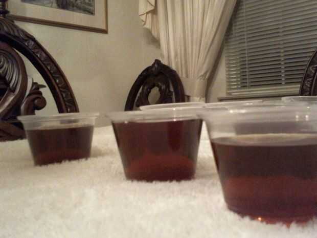 Usted se estará preguntando por qué es necesaria el 1/2 taza de agua. Encontré que la receta era demasiado dulce si izquierda sin diluir. Aunque 1/2 taza de agua puede sonar como mucho, lo realmente no le quita el poder del alcohol a un grado notable. No dude en ajustarlo a tu gusto.