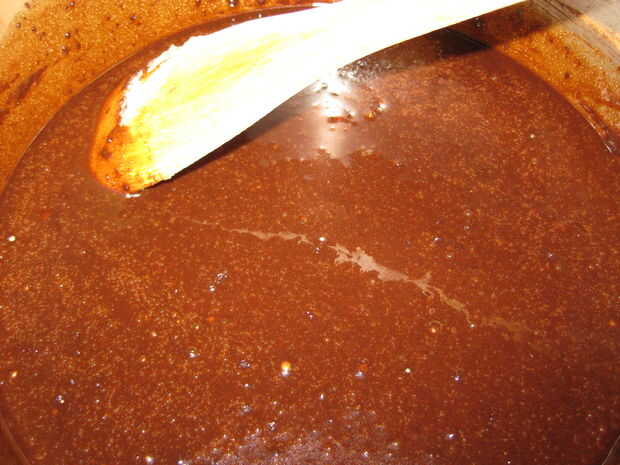 Una vez que la mantequilla se haya derretido añadir leche, azúcar y cacao en polvo. Revolver hasta que coherente.