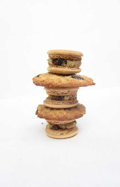 Tomar aproximadamente 3/4 de cucharadita de pasta de la galleta y rodar en una bola, colocar en la parte inferior de un macaron y superior con un segundo macarrón, junte los macarons, hasta que la masa para galletas para los bordes de lo macarrón.
