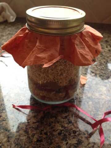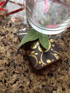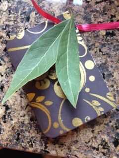 En primer lugar, ató una cinta a través de la tarjeta por lo que puede ser utilizado para atar alrededor de la tapa de la tapa del tarro de masón. Para adornar aún más he pegué Laurel de pequeño tamaño en la tarjeta de instrucciones. Entonces puso peso durante 5 minutos o para que el pegamento se seque.