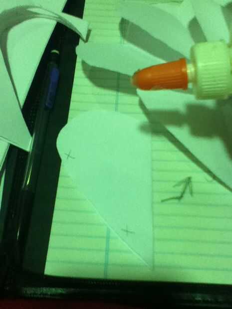 Ahora tenemos corazones pegados en medio el siguiente paso es pegar juntos. Una vez más he marcado los puntos con x