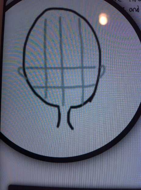 Ahora dibuja otra línea a medio camino entre la Cruz horizontal y la parte inferior de la cara. Y dos a cada lado de la línea vertical.