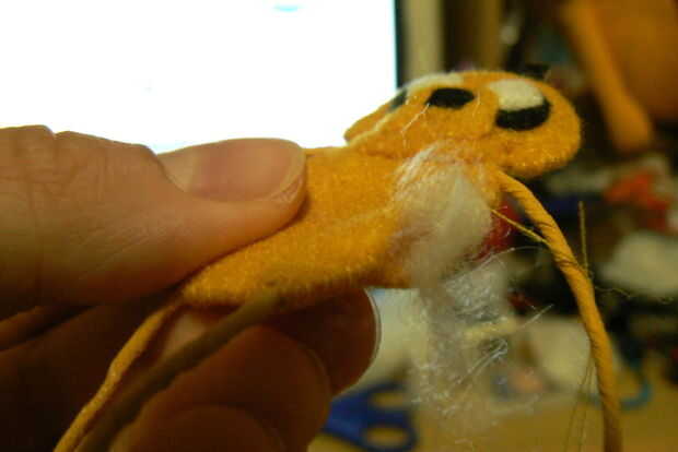 Coser la parte delantera y trasera del cuerpo junto. Agregar el relleno y cerrar.