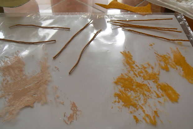 Pintura cuatro de las cadenas de la carne color y cuatro el color de fieltro que está utilizando para Jake. Espere a que la pintura se seque.