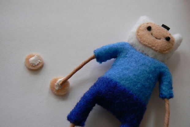 Cortar los brazos a la longitud que desea. Añadir dos puntos de pegamento para unir las manos de fieltro. Coser alrededor de las piezas de mano para garantizar.