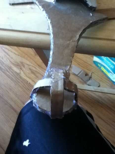 En un principio mi idea era conseguir una bola real y cortar por la mitad. Pero me di cuenta de una idea "mejor". Si no has visto mi instructables otros (debe) uno de ellos era una guitarra de Kristoff congelados (actualmente conocido como mandolina o botín), pero uno de los pasos hacía la parte redonda. Primero cortar tiras largas de cartulina (4). Hacer un T o Cruz en ambos lados. Hacer 8 formas de triángulo y pegar en el. Pintura de aerosol oro.