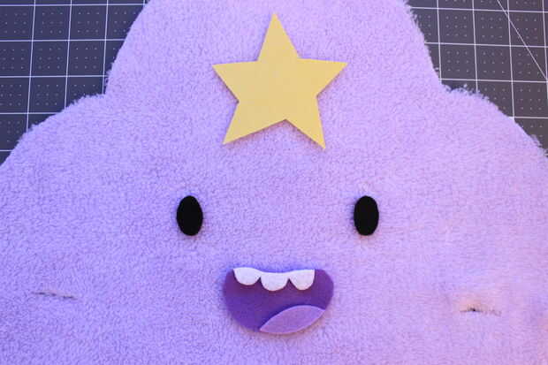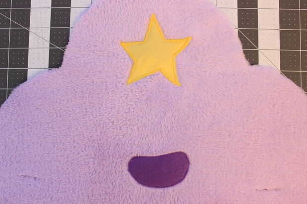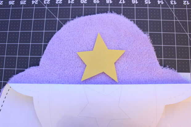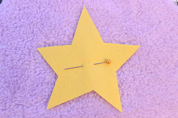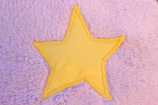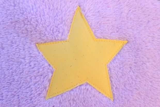 Para coser la cara comencé atando la estrella a la pieza frontal del cuerpo. Hice un doblez en la pieza en la parte inferior de la estrella de mi cuerpo y utilizó esto como una guía para el posicionamiento de la estrella.