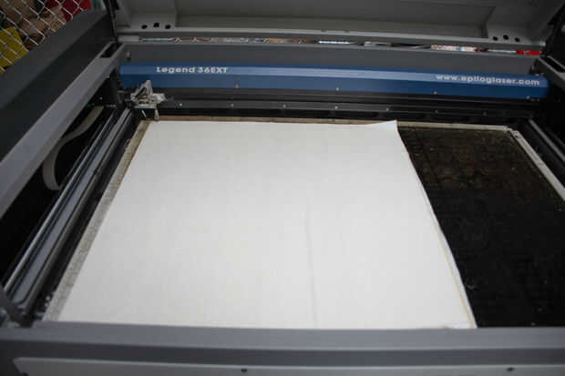 He aprendido de madera de corte con láser, que humo puede quemar su leña y ser difícil de arena hacia fuera. Aplicación de cinta adhesiva a ambos lados de su material no resuelve este problema, pero ayuda un poco. Solía 24" cinta de enmascarar ancha sobre un rodillo de piel mi madera contrachapada, pero si usted no puede encontrar en su ferretería, sólo conseguir algunos 3" cinta y hacer varios pases.