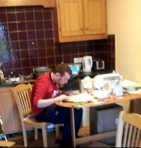 Manga se hicieron en la máquina de coser pero costura recta para cerrar una doblada en rectángulo de material y entonces el revés. Estos se quedaron un poco flojos para añadir al rey hielo efecto.