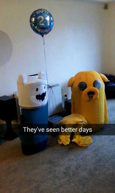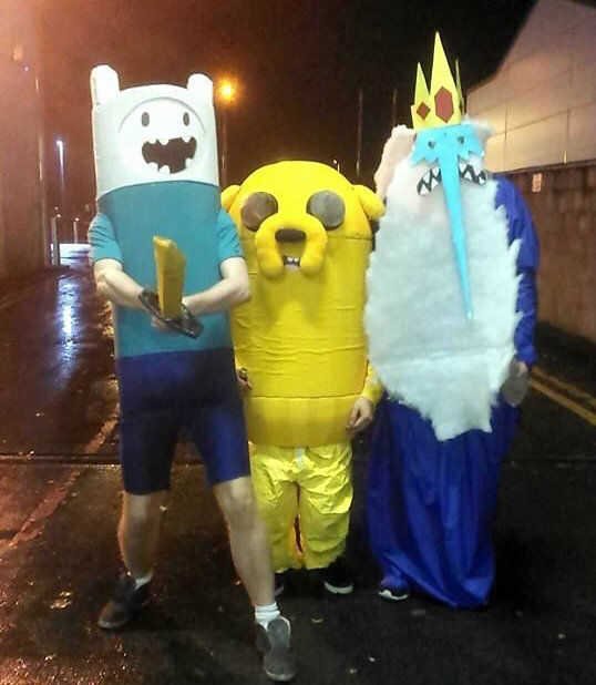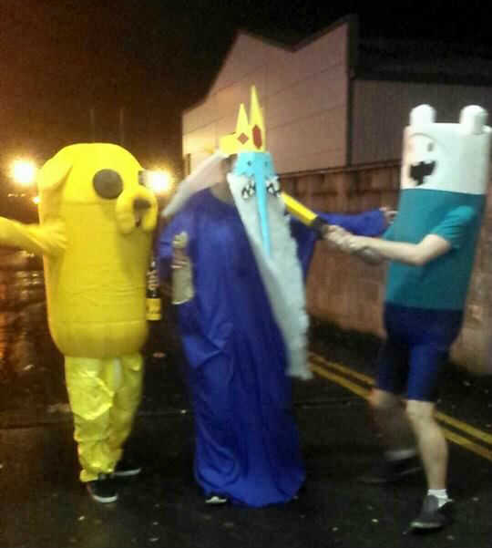Después de Halloween que decidimos mantener los trajes como ornamentos. Cabeza de finlandeses como una pantalla de salón. Envuelto en luces de Navidad alrededor de Jake y le amarró a la pared como nuestro árbol de Navidad del colegio. Hielo rey se perdió en la aventura en la noche de Halloween nunca parece ser otra vez.