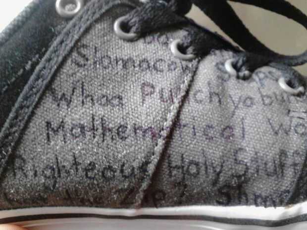 Un zapato es tiempo de la aventura y la otra es Regular. Al otro lado de los zapatos tiene las diferentes frases.