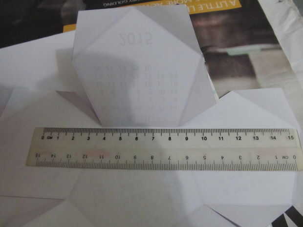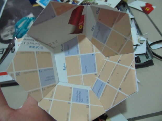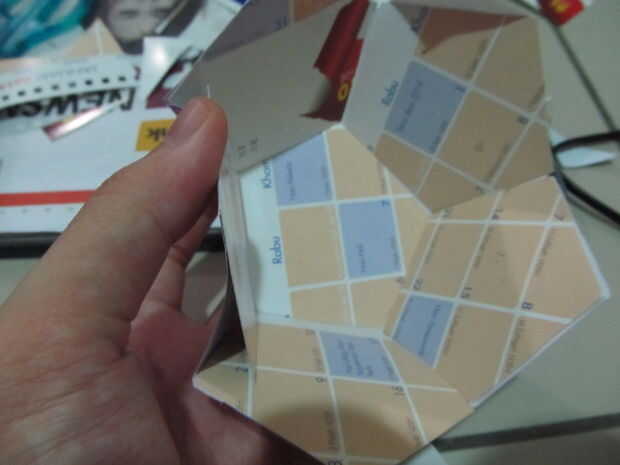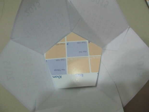 - Corte 12 pentágonos de un cartón delgado. Yo uso cartulina de un calendario (irónico)