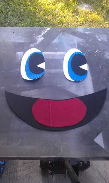 Pieza por pieza, utilice adhesivo en aerosol para fijar a todos. Todos las partes del ojo y y piezas bucales. Debe acabar como la última foto aquí.