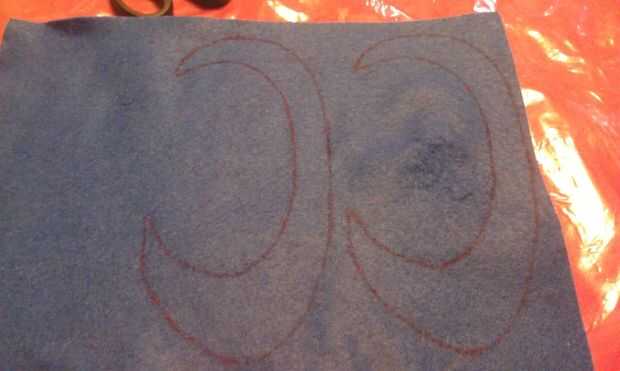 Corte la parte de color del ojo. Dale la parte trasera hacia arriba y trace en fieltro azul dos veces. Recorte.