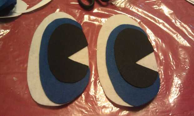 Empezar con el ojo. Dale la vuelta sea posterior y traza dos veces en papel de fieltro blanco. Cortar el fieltro.