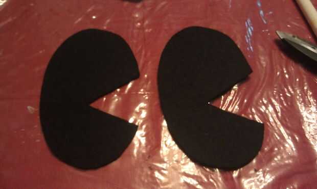 Corte la pupila del ojo del patrón. Voltee a la pupila quede su parte trasera y del rastro dos veces en fieltro negro. Recorte.