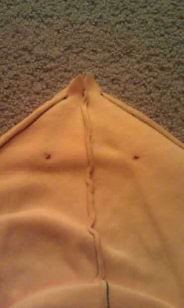 Ahora para cortar un agujero para la cabeza. Sólo presenta la bola plana y había tenido lay Zander. Lo donde quería y marcado posicioné en cada lado de su cuello. Luego conectar los puntos con una línea ligeramente curva, como una típica camisa y corte en la línea.