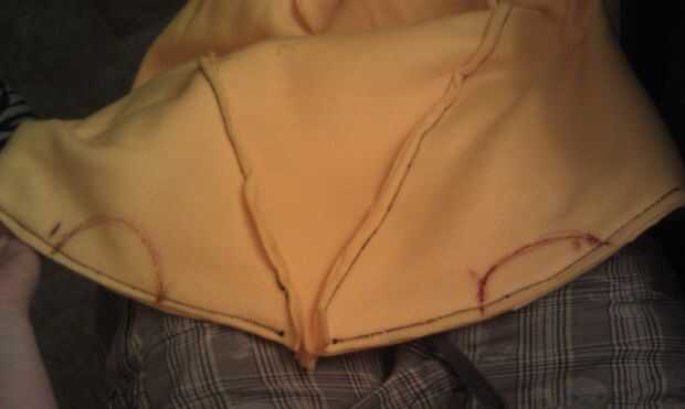 * Nota * desea la pierna los agujeros un poco ajustados para que el traje no resbale mucho, pero no demasiado apretado. Terminamos con un agujero más grande que el otro y poco demasiado ajustado.