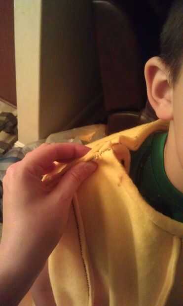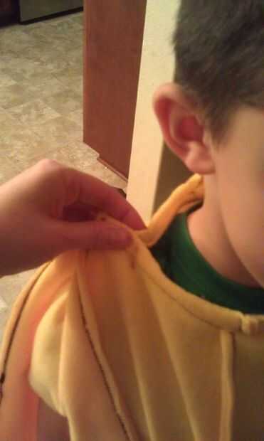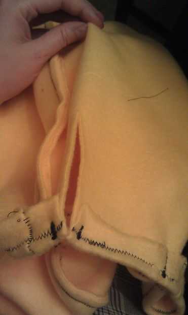 Ahora escoja un lugar donde se corta una línea para la cremallera para posteriormente para que el niño puede entrar y salir de él. Coser una línea a través de la costura a ambos lados del lugar de la ranura. Corte la ranura. Córtelo en cuanto piensas que necesitas para que tu hijo a montar.
