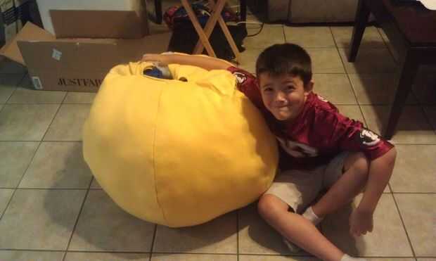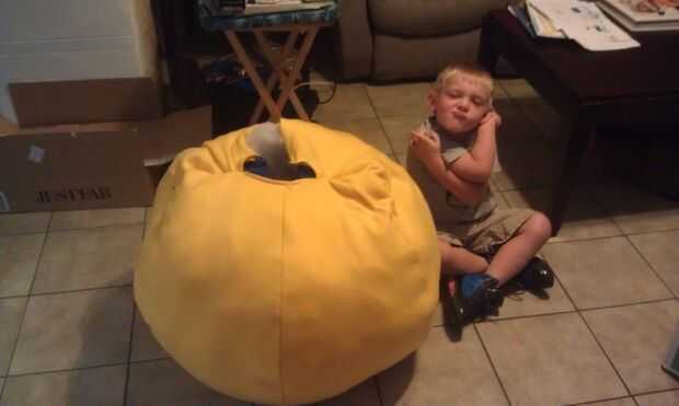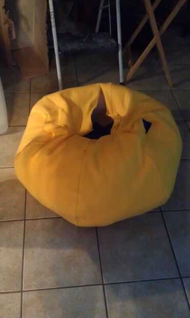 Tienen su hijo bloquearla, conozco, el niño pobre y empezar a rellenar. Poner el relleno en a través del orificio del cuello trasero y trabaja en el frente, entre las piernas, debajo de los brazos, todo. Lleva un montón de relleno para llenar ese perrito! Se utilizaron bolsas de 2 y casi la mitad de una caja.
