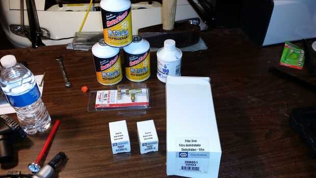 Antes de comenzar a trabajar; obtener los accesorios correctos para su vehículo, las herramientas necesarias, y si es posible un esquema del sistema de aire acondicionado para ayudar en la localización de los sellos. El coste de esto después de que los depósitos de herramienta prestados fueron devueltos fue aproximadamente $65
