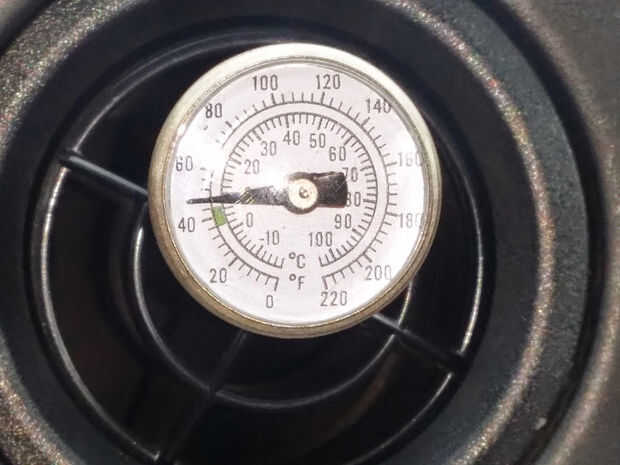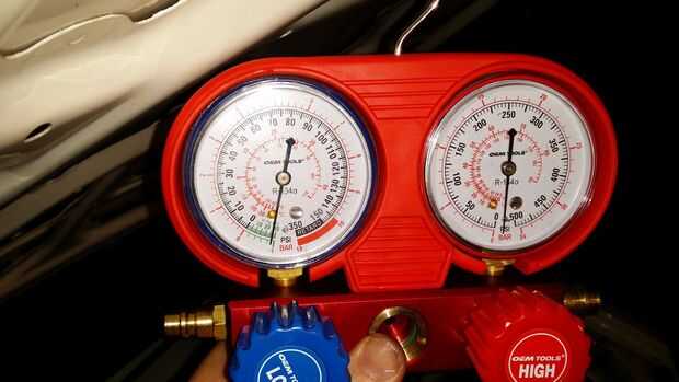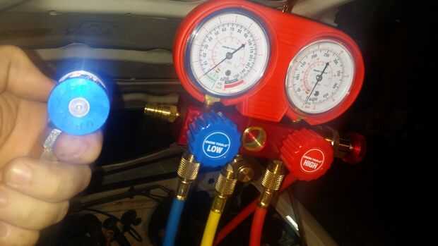 Después de que han alcanzado el deseado lado baja presión, cerrar la lata grifo y válvula múltiple de lado de baja. Conecte el lado de baja rápido abierta la válvula y desconecte la poder parcial sellado ahora mientras que rosca la línea amarilla de servicio a su válvula de lazo. Si usted puede hacerlo con seguridad, abrir el lado alta rápido Conecte la válvula para obtener una lectura alta. Si todo funciona correctamente lo están el aire acondicionado está completamente cargada y tienes una lectura en su termómetro de ventilación que es de unos 40-50 grados algunos termómetros tienen una zona marcada. Mis resultados fueron sólo en la parte alta de la blanco pero dentro de la gama.
