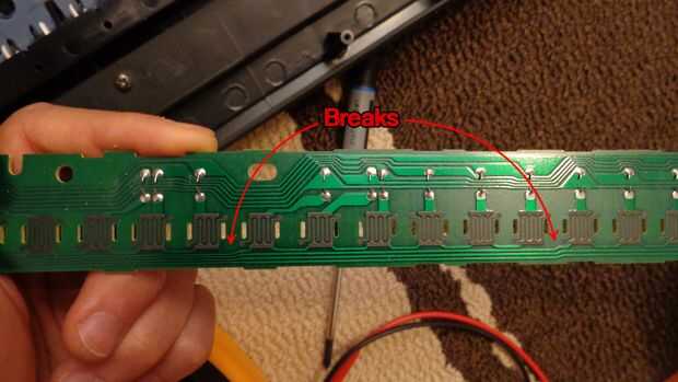 Mediante la inspección de la Junta, a veces podemos ver las agrupaciones de las teclas. En este ejemplo, podemos ver grupos de 6 teclas por grupo. Las claves de cada grupo están conectadas juntos, y un descanso separa cada grupo.