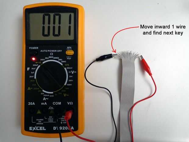 En este ejemplo, la segunda clave pasa a ser adyacente a la primera clave, para que podamos hacer una conjetura que la cinta se divide en 6 cables de salida de los alambres de entrada izquierdos y 11 a la derecha.