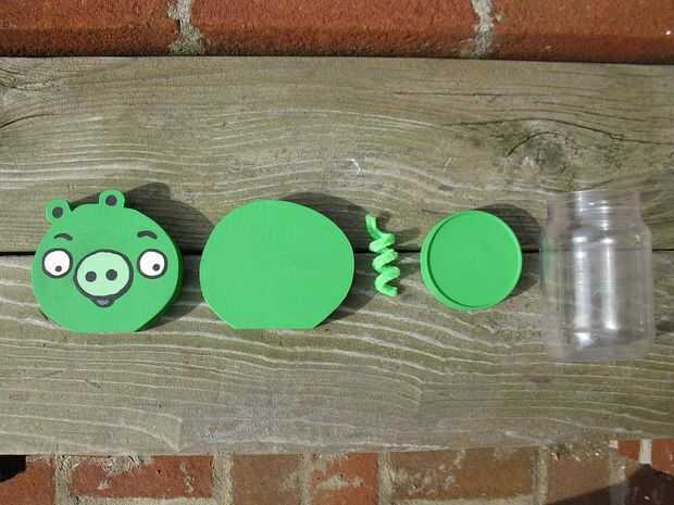Pintar el cerdo cabeza y parte posterior. Pintar la tapa del tarro de mantequilla de maní verde.