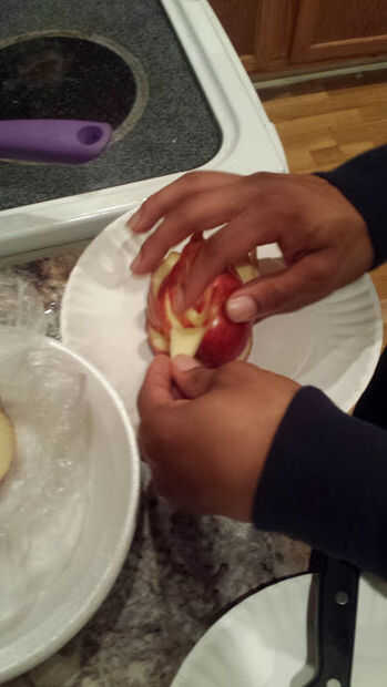 Volumen de manzana fácilDescongelar las hojas de masa durante la noche en el refrigerador oSacar láminas de hojaldre del envase y deje que se caliente durante un mínimo de 20 minutos.Mientras que la masa se calienta:Precalentar el horno a 400.Pelar,
