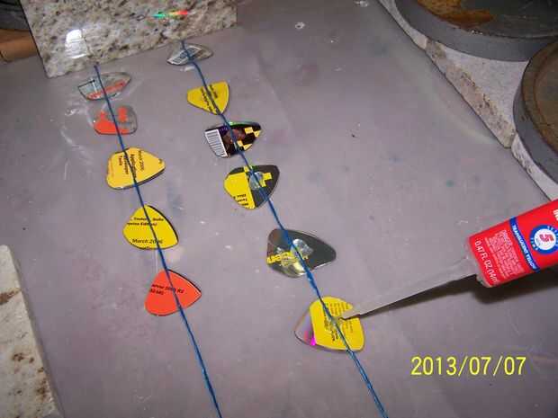 -Con todo en su lugar, exprimir suficiente epoxi en los inferiores para cubrir la mitad de la pieza del CD y la guita, mantenerse alejado de los lados para que no consigue ejecutar cuando intercala.