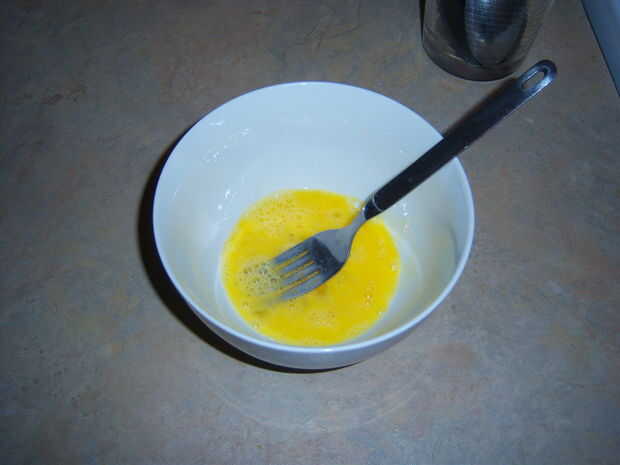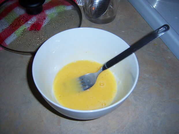 Mientras espera, batir el huevo en una taza/tazón de fuente.