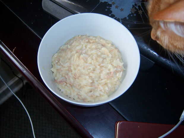 * Si después de haber utilizado pollo ya cocido, tiendo solo mezcle el arroz con el pollo, poner a hervir, reducir a fuego lento, cubra y tiempo 15 minutos en lugar de otro.