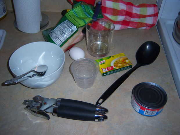 1 lata de cualquier carne en trozo/escamas. es decir, el clásico, atún/pavo/pollo, no nada picado, arrinconado como carne de res.