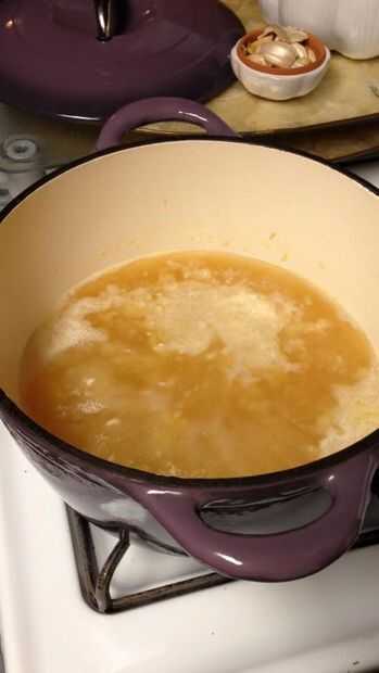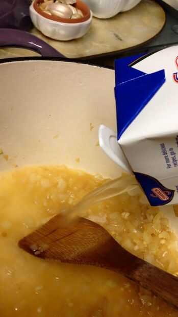 Paso 6: Añadir el caldo de pollo, poner a hervir, añada el arroz