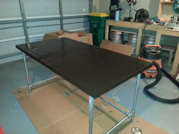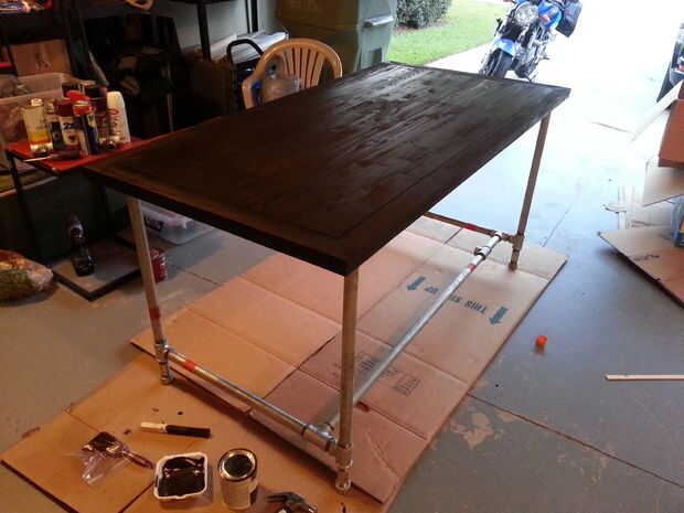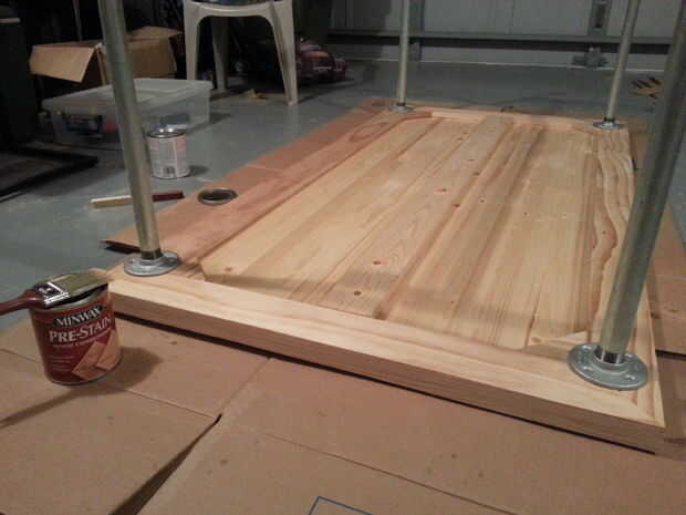 A continuación, os adjunto la base hasta la cima por perforación tornillos a través de los orificios en las bridas de piso en la parte superior. Podría quitar la parte superior para el acabado pero decidí dejarlo sobre el porque la mancha fácilmente los trapos de las bridas de piso galvanizado.