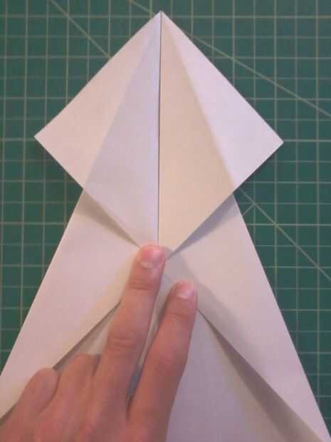Doble a lo largo del último pliegue hecho luego inversa doblar el pliegue alineado con el centro hacia el exterior. Hacer lo mismo con el otro lado. Usted debe terminar con un cuadrado dividido por la mitad.