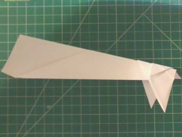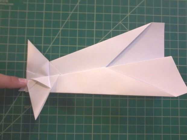 Doblar los bordes delanteros de las alas en la parte inferior del fuselaje.
